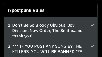 *** IF YOU POST ANY SONG BY THE KILLERS, YOU WILL BE BANNED ***