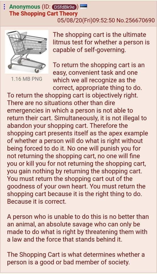 A 4chan User Comes Up With the “Shopping Cart Litmus Test Of Self-Governance”