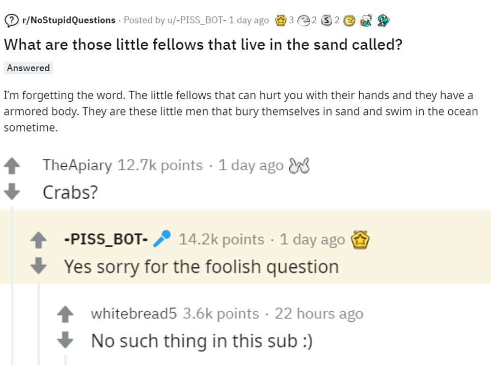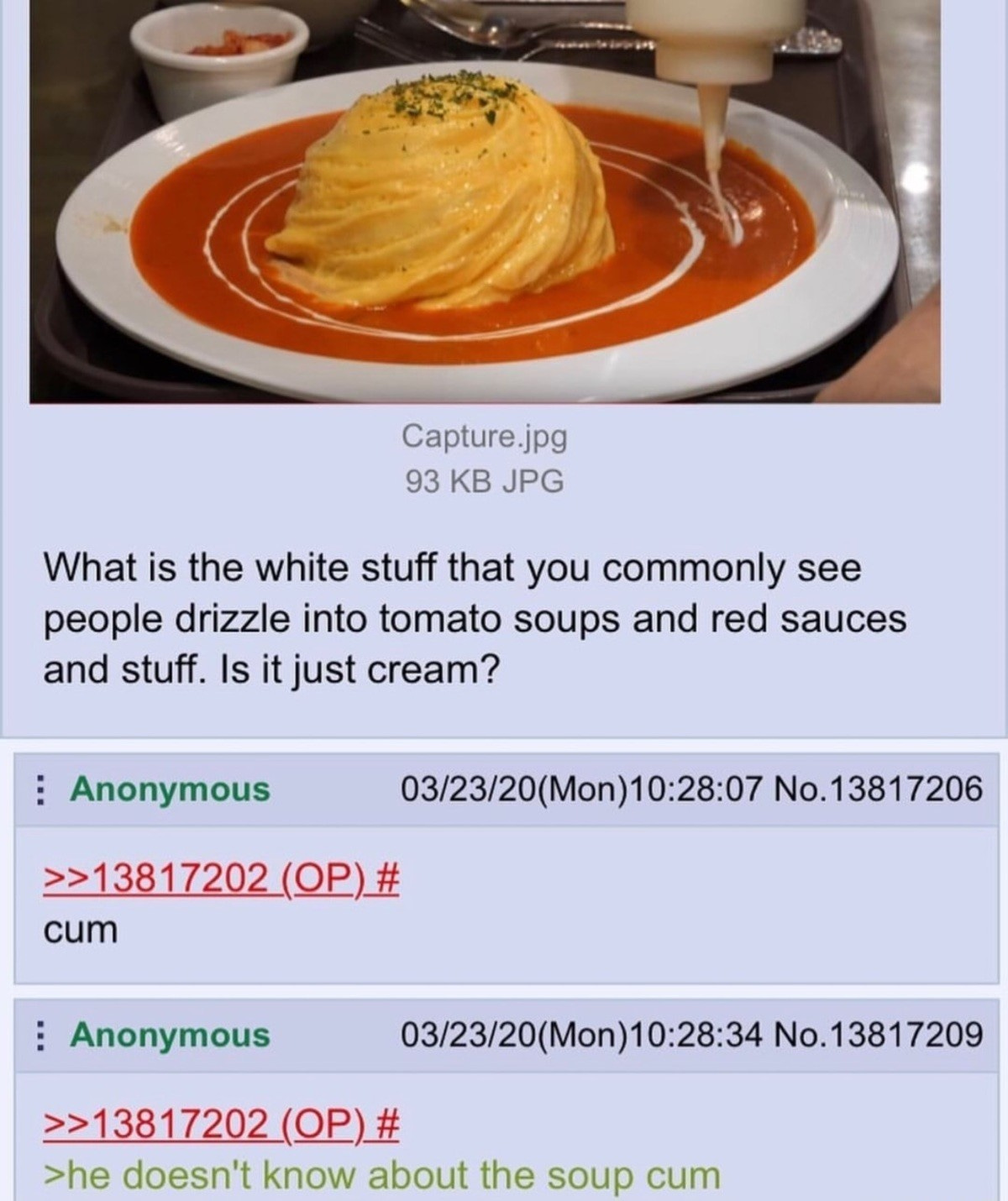 My head canon is that the 4chan user who forgot about soup cum and the Redditor who forgot what crabs are actually quarantined together and suffering from the same carbon monoxide leak.