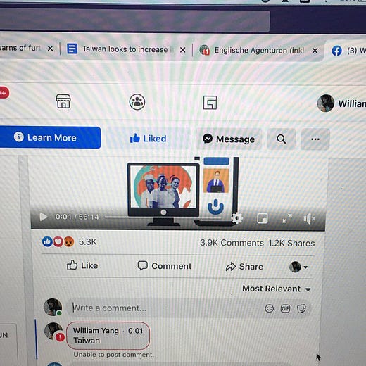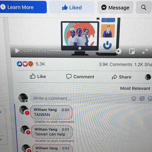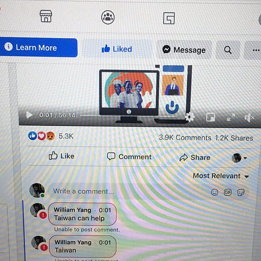 It seems as though the World Health Organization may have been blocking any mention of the word “Taiwan” from their Facebook comments. William Yang, a great journalist based in Taipei, posted screenshots of what happened when he tried to mention Taiwan in the WHO comment section this week.