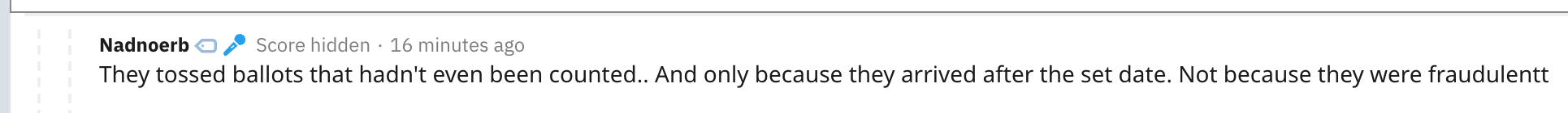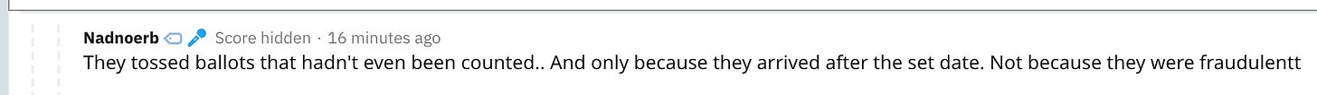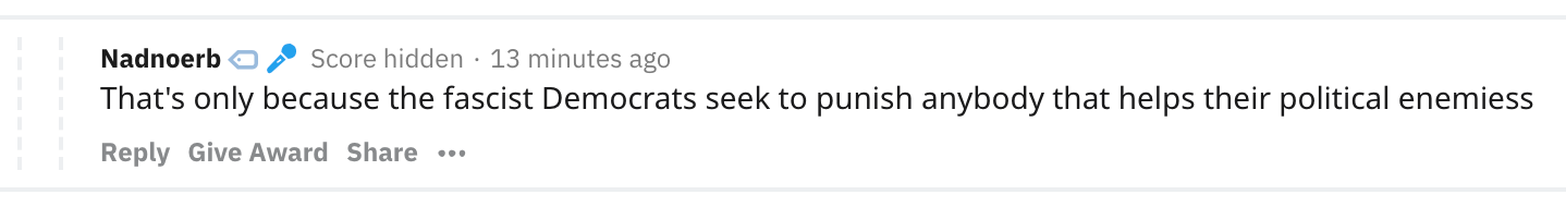 The suspicious account that u/f_k_a_g_n found is named u/Nadnoerb and it appears to be part of a network of Reddit accounts that may total in the hundreds. They’ve been posting right-wing misinformation since at least 2016. The u/Nadnoerb account is a super active r/Conspiracy commenter.