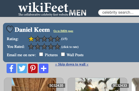 His feet are rated 1/5 stars and users claim his shoe size is a 4? Which is shockingly small, if true. Anyways, congrats! This awful information is in your brain too now.