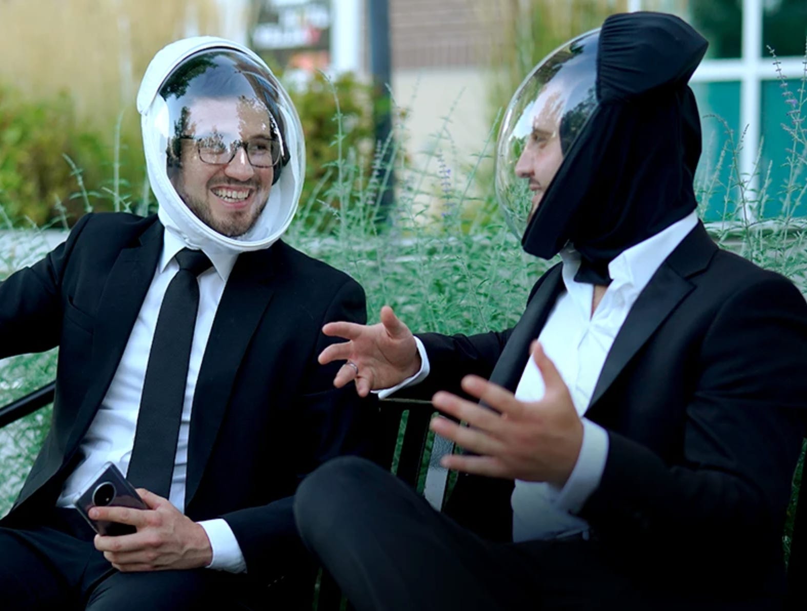 These late-stage capitalism containment helmets are called “air.” because of course they are and they’re being made by a company called MicroClimate. They cost $199 and the website says they were inspired by the company’s founder not being able to talk to his children on a ski lift because of their scarves and goggles. Which, if that’s true, imagine having this idea BEFORE the coronavirus and thinking it was normal. The air. helmet has a battery in it that lasts for four hours, apparently. Uh-oh, I hope I remembered to charge my microclimate helmet before my big presentation so I don’t asphyxiate in the boardroom. Anyways, everything’s fine. Everything’s cool. We’re alright. We’re alright. We’re alright.