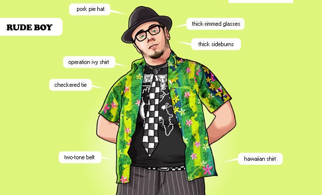 It's weird. I do see people in the wild that still look like these characters. People were dressing up as these characters for Halloween. The weirdest thing to me, I'm a big pro-wrestling fan. There was a promotion and on their first inaugural event, there's a photo of a guy doing a back-flip off the top rope to the outside and there's a dude in the front row, who, I kid you not, is dressed exactly as the ska fan, the rude boy. I want to try and find out who this guy is. I want to know if he's trying to dress like him or that's just his sense of fashion.