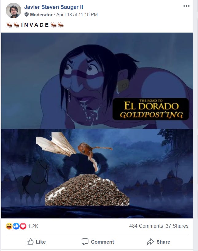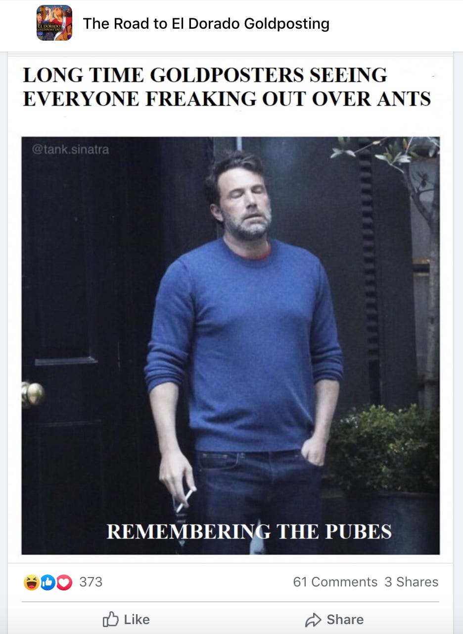 Based on other posts I’m seeing in the El Dorado group, though, I’m guessing this is not the first time they’ve been astroturfed by another Facebook shitposting community. I do not know the backstory behind this meme and, you know what, I’m better off NOT knowing.