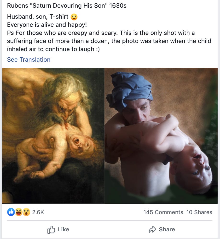 This Facebook Group is pretty incredible. Its name translates to “Insulation” and it consists of bored quarantined Russians cosplaying as famous works of art. The group actually has what look like EXTREMELY strict community rules. There are 13 of them and they are hilariously intense. Here are some of my favorites — machine-translated from Russian: