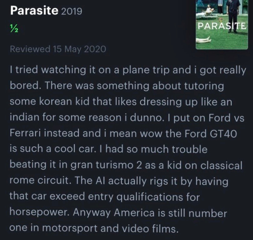 A Good Letterboxd Review Of Parasite