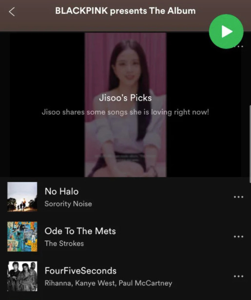 K-Pop girl group BLACKPINK is currently promoting their new album The Album and recently released a Spotify playlist including some of the members’ favorite songs. The playlist is super eclectic, especially the picks from Kim Ji-soo, who included The Strokes, Catfish and the Bottleman, and most importantly for r/Emo, the band Sorority Noise.