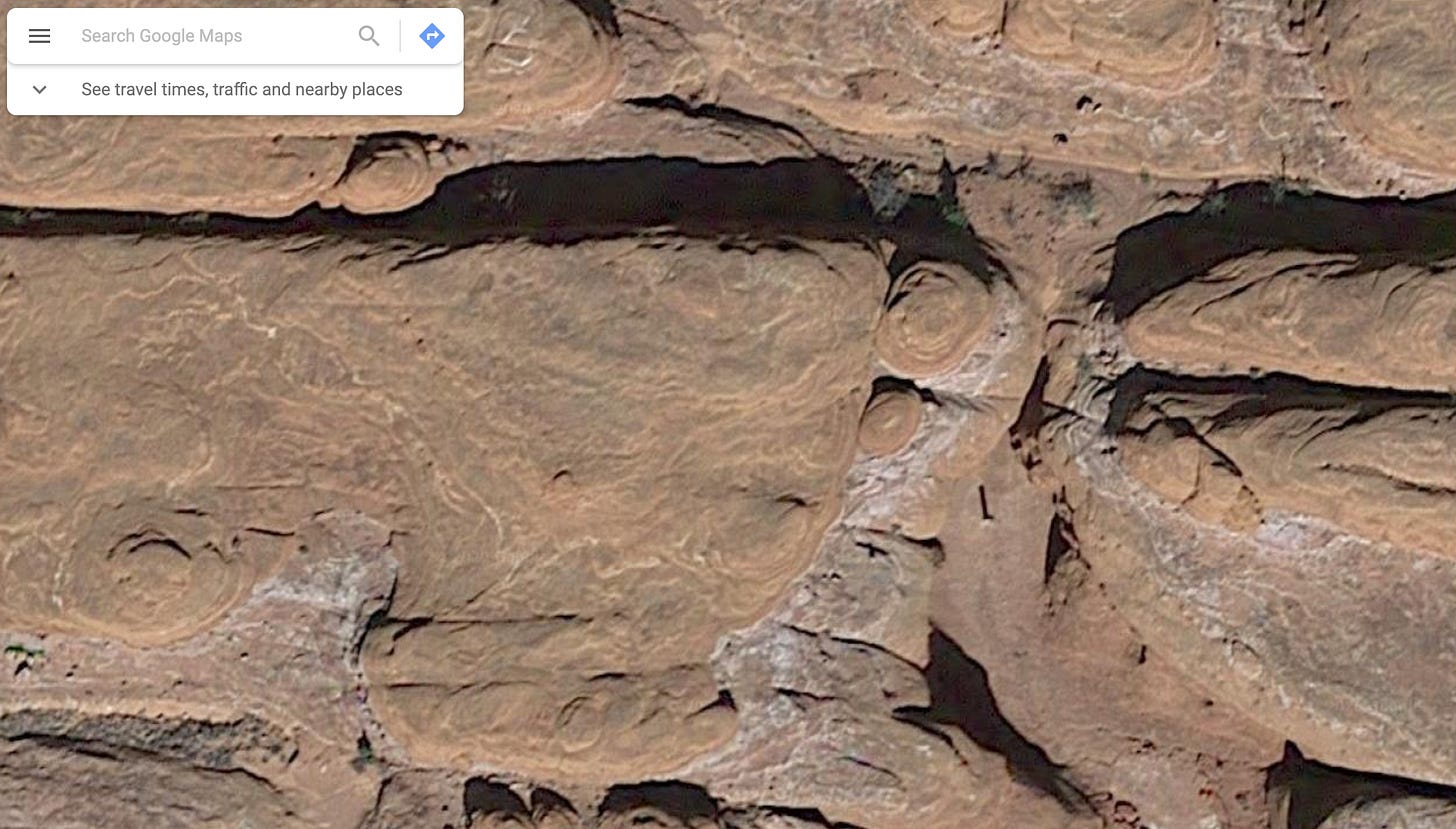 I looked at rock type (Sandstone), color (red and white - no black streaks like found on higher cliffs in Utah), shape (more rounded indicating a more exposed area and erosion), the texture of the canyon floor (flat rock vs sloped indicating higher up in a watershed with infrequent water), and the larger cliff/mesa in the upper background of one of the photos. I took all that and lined it up with the flight time and flight path of the helicopter - earlier in the morning taking off from Monticello, UT and flying almost directly north before going off radar (usually indicating it dropped below radar scan altitude. From there, I know I am looking for a south/east facing canyon with rounded red/white rock, most likely close to the base of a larger cliff/mesa, most likely closer to the top of a watershed, and with a suitable flat area for an AS350 helicopter to land. Took about 30 minutes of random checks around the Green River/Colorado River junction before finding similar terrain. From there it took another 15 minutes to find the exact canyon. Yes... I'm a freak.