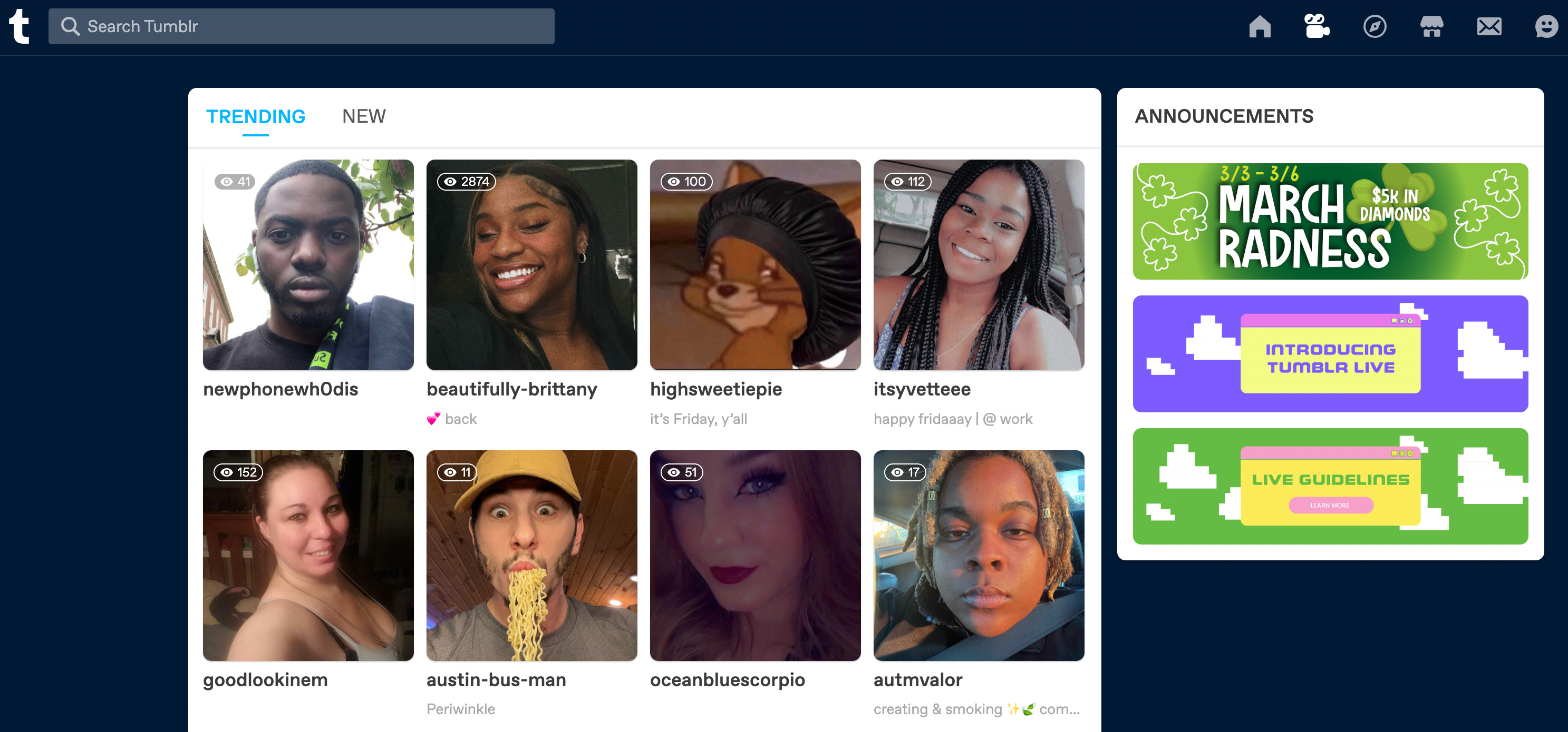 Tumblr has been working on a live video feature which, up until now, has been on mobile only. You can now watch it in your browser right from the dashboard. I’ve clicked around and watched a few folks go live on Tumblr and while it’s not what I, personally, use the site for, it seems sort of nice? It has a raw, unprofessional vibe that feels very retro in a good way and it makes you realize how gamified and growth-hacked livestreaming is everywhere else on the internet.